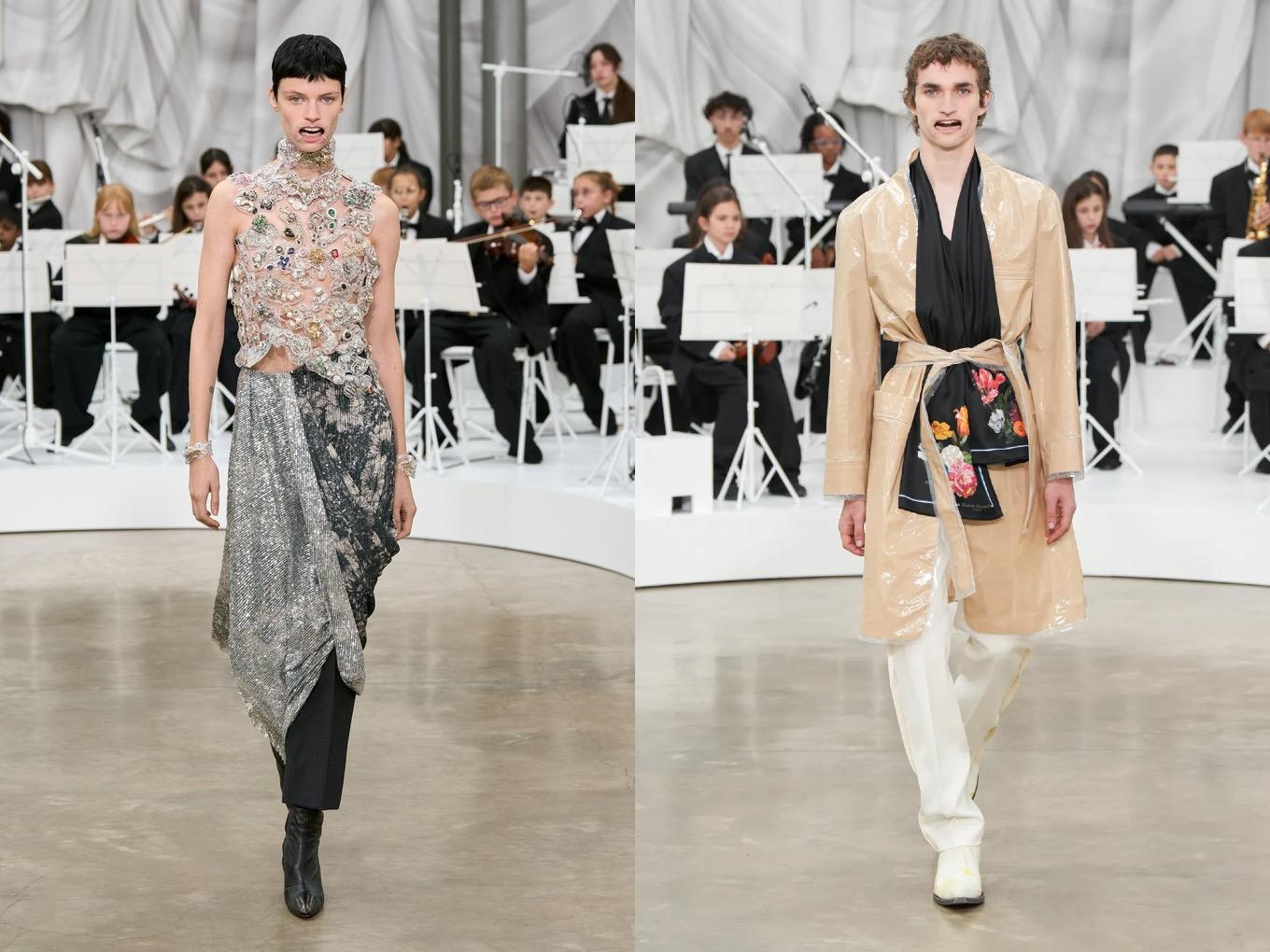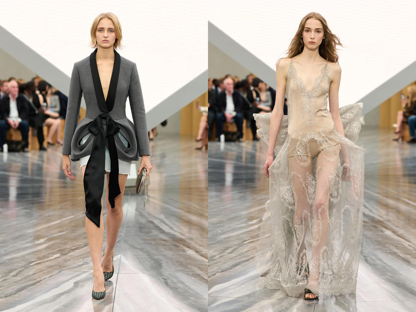 Это был контраст по сравнению с кутюрным дебютом Мартенса в Margiela несколькими месяцами ранее, где шок сменялся ощущением затянутости, перегруженности (в том числе за счет поставленного на повтор трека Smashing Pumpkins, создававшего давящее чувство). При этом сохранялось ощущение высокого мастерства.