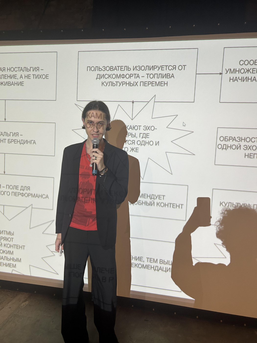Говорили о слове «анемойя» – термине, который означает память без непосредственного опыта и выведен в проекте с красивейшим названием «Словарь неясных печалей». Говорили, наконец, о сообществах и алгоритмах соцсетей, которые умножают эту ностальгию, – и если новизна это риск, то ностальгический товар безопасен.