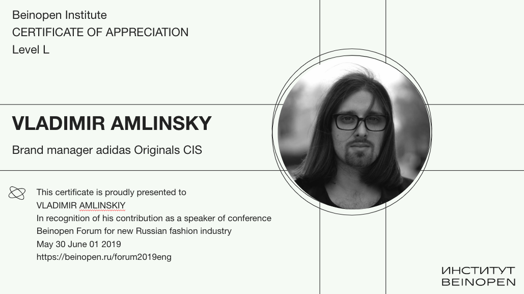 Спикер: Владимир Амлинский — креативный продюсер с более чем 12-летним опытом в бренд-маркетинге, организации мероприятий и работе с инфлюенсерами. Работал с adidas Originals в СНГ, Levi’s, Bacardi, Gosha Rubchinskiy. Сейчас Владимир развивает собственную студию креативного продакшна в области бренд-маркетинга в Нью Йорке - Entertainment Technologies.