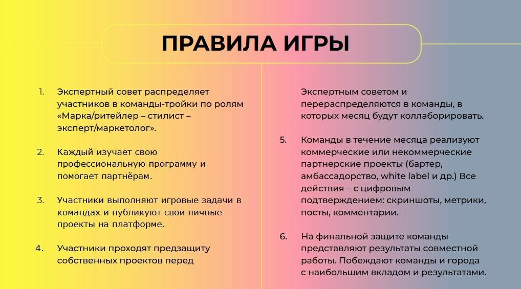 Наша цель – рост вашего заработка и профессионализма. В игре, правила которой вы читаете, мы собираем партнёрства между стилистами, марками, ритейлерами и маркетологами на основе лучших практик других регионов или комьюнити.