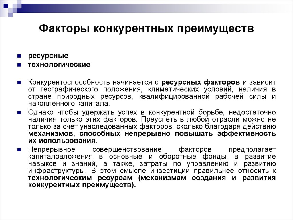Источники конкурентных преимуществ стран и предприятий