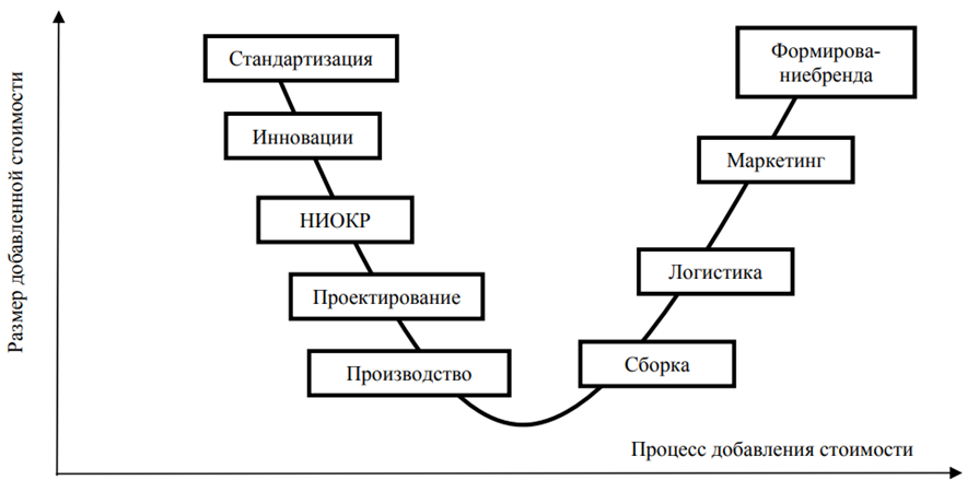 Г. Джереффи разработал два пути вхождения и продвижения по цепочке создания стоимости: продвижение «сверху вниз» и «снизу вверх» (рисунок) [2, с. 141].