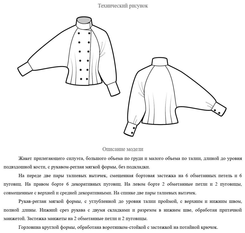 Задача: разработать лекала по заданному ТЗ и референсам, отшить образец, оформить пакет документов.