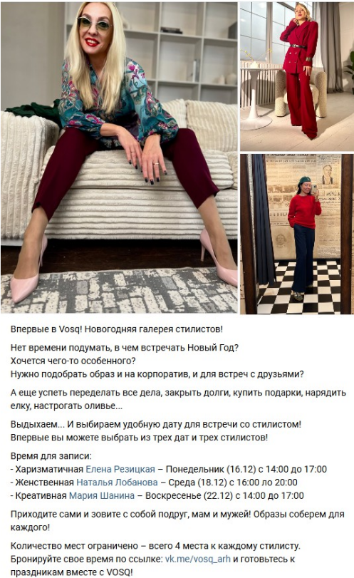 Стандартная ошибка при работе со стилистами (да и вообще при продаже) - думать, что люди уже все хотят купить у вас и ждут, когда вы разрешите. Посты из серии "День со стилистом завтра. Приходите" сработают только на тех, кто уже определился, что им нужен стилист и что он нужен в вашем магазине. Либо если приедет Рогов - стилист, на которого все итак хотят попасть. В остальных случаях нужно объяснять, зачем покупателям приходить на день со стилистом/клиентский день.