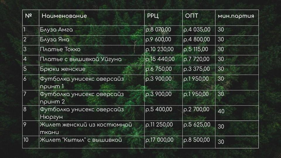 Поэтому купить может только человек, любящий якутское больше, чем визуальную красоту. Ансабль ты показываешь, цены оптовые (их обычно убирают в лайншит).