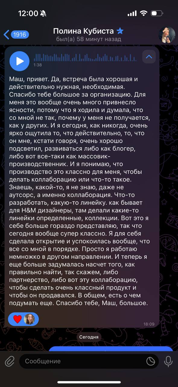 Сейчас идёт большая подготовка к запуску — и каждый день мы применяем советы ментора. Проект становится сильнее, яснее, увереннее.